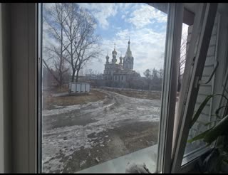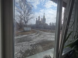 Из окон открывается вид на церковь с колокольней, по соседству находится здание ЗАГСа .