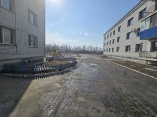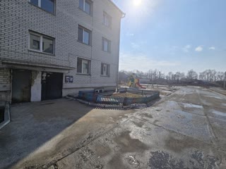 Благоустроенный двор включает детскую игровую площадку и зону открытой парковки.